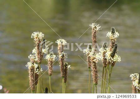 ヨーロッパ原産の花径の先に穂状の花序か可愛い帰化植物のヘラオオバコ