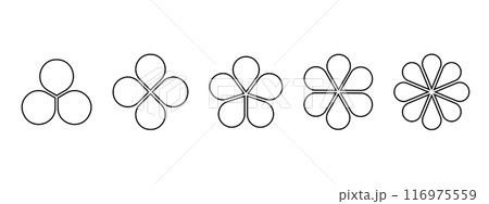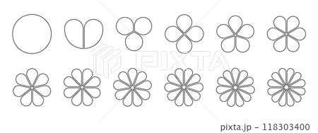 Flower petal shape icons set. Infographic circle diagram. Pie simple chart. Flower leaves geometric graphic element. Round wheel chart. Line vector illustration isolated on white background