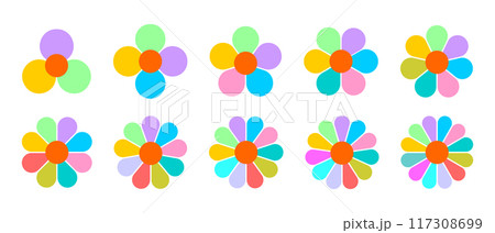 Set of flower shapes. Floral diagrams with petals from 3 to 12 for data presentation isolated on white background. Infographic templates. Vector flat illustration