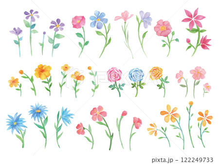 優しいタッチの色々な水彩の花セット
