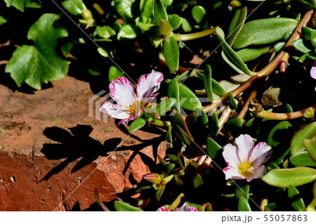 三鷹中原に咲く赤と白の複色ハナスベリヒユ
