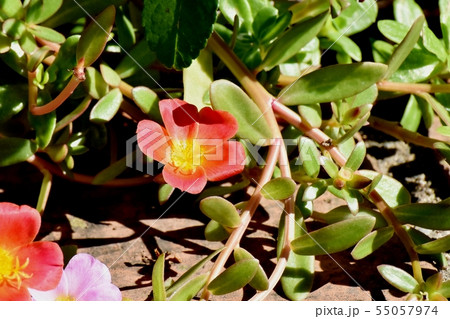 三鷹中原に咲く朱色のハナスベリヒユ(ポーチュラカ)