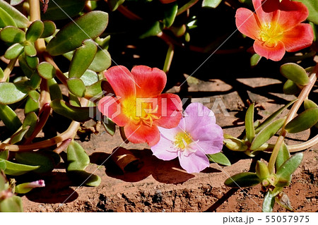 三鷹中原に咲く赤とピンクのハナスベリヒユ