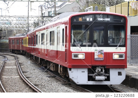 京急本線を行く600形(川崎大師大開帳記念ヘッドマーク)