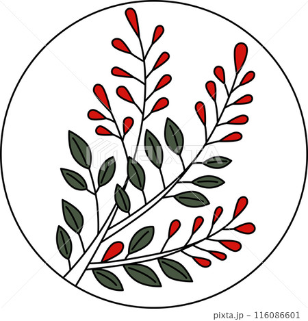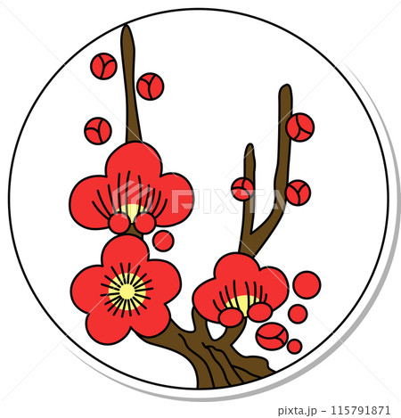 ステッカー風の円形花札 如月 梅 2月 梅のカス