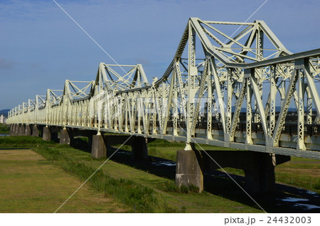 淀川(JR塚本駅近く)より大阪・梅田方面の市街地の眺め