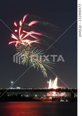 「埼玉県」川口花火大会を対岸の北区から望む 川口市