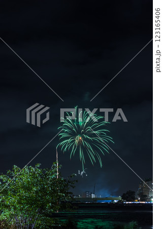 湖西市の湖西湖上花火大会の夜空に咲く打ち上げ花火(静岡県)