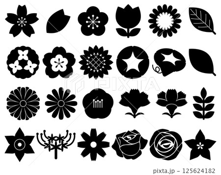 お花のアイコン24種セット モノトーン