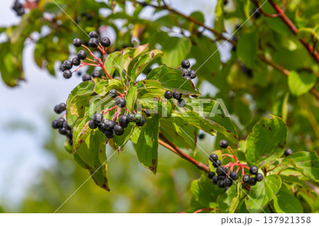 Cornus sanguinea is a perennial plant of the sod family. A tall shrub with small flowers and black inedible berries. Turf-well is grown as an ornamental plant