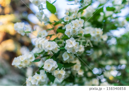 Mock Orange Philadelphus coronarius shrub flowering in spring