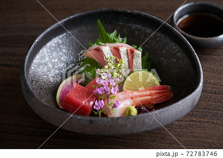 刺身三点盛り(縞鯵 本鮪 甘海老)