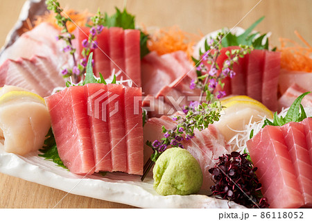 刺身4種盛り合わせ(メバチ鮪、鰤、鯛、帆立)