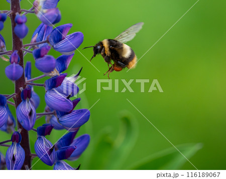 ラベンダーの蜜を吸うミツバチ クローズアップ