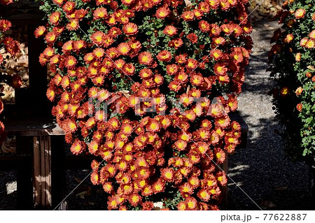 調布市深大寺元町の植物園に咲くオレンジ色のキクの花