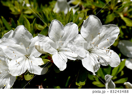 三鷹中原に咲く白いツツジの花