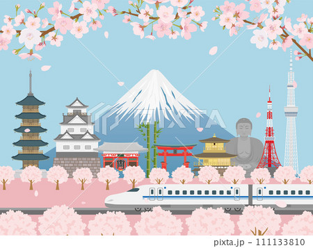 新幹線と富士山 桜付き
