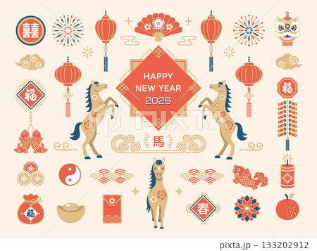 Chinese New Year 2026. Year of the Horse. Set of design templates, greeting cards and banners. Happy chinese new year.