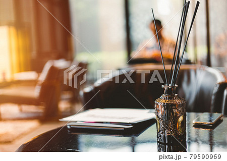 Room aroma fragrant oil reed diffuser. Perfume stick scent surround for indoor fresh good odor air.