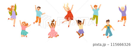 Jumping Kids Feeling Happiness and Excitement Having Fun Vector Set