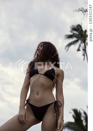 Beautiful young woman on the beach. pretty Sexy girl in Bikini