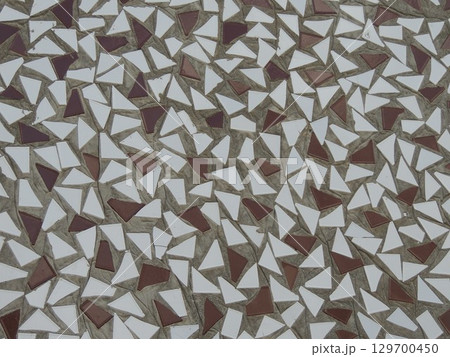 pattern of triangle tiles glued into cement on wall, decoration of simple geometric mosaic of building wall fragments, abstract minimalist design background