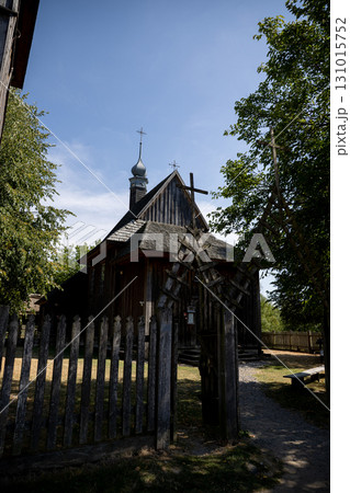 A Rustic Wooden Church Beautifully Surrounded by Lush, Vibrant Greenery and Nature