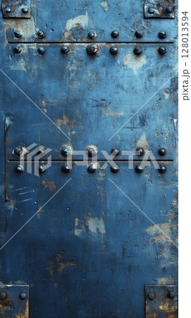 Weathered Blue Metal Panel with Rivets - Industrial Background
