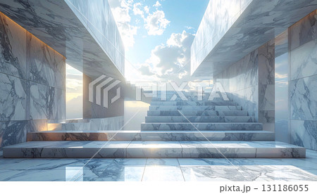 Impossible geometric loop of marble stairs, a surreal modern artistic composition