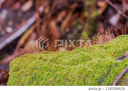 朝露に輝く苔のマクロフォト《兵庫県 豊岡市》