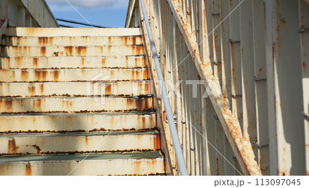 劣化した歩道橋の階段(塗料の錆び、防水剝れ)