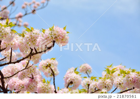 青空を背景として、苔清水と推定されるサクラの樹の枝の花を撮影した写真