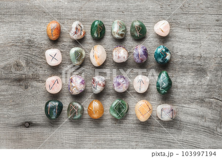 Elder Futhark Rune Stones Set Made of Natural Gems
