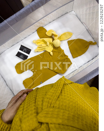 Cozy Baby Crib with Yellow Outfit and Accessories