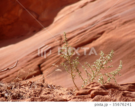 アメリカ、荒野の岩に自生する植物