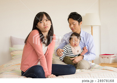 子育てに悩む若夫婦と赤ちゃん