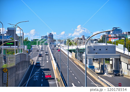 名古屋市中区大須都市風景 若宮大通りとグローバルゲートと白川料金所