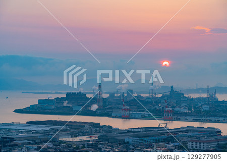 【福岡県】高塔山から見る北九州市の工業地帯 日の出