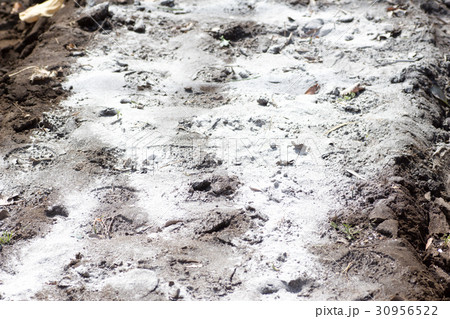 石灰をまいた土