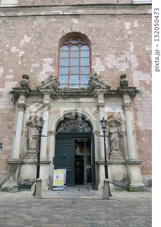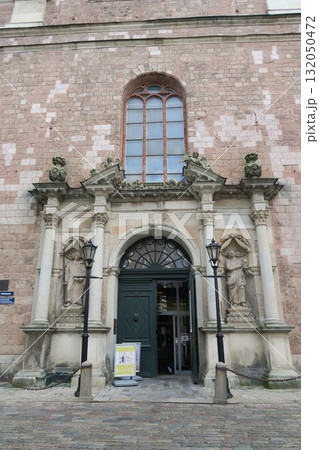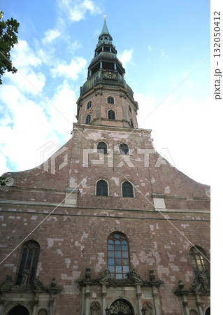 リーガ旧市街の聖ペテロ教会、ラトビア産苦灰岩に掘られた入口の彫刻群