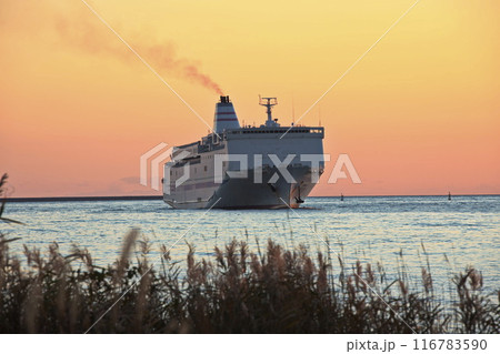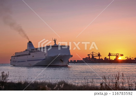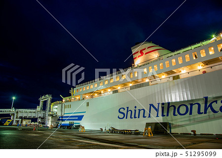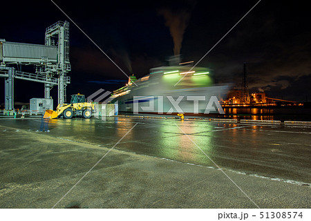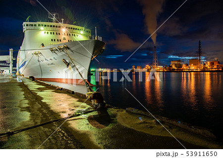 苫小牧東港から出航直前の新日本海フェリー らいらっく 工場夜景