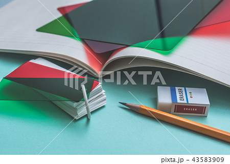 ノートと辞書と単語カードと本棚 本 勉強 学習 教育