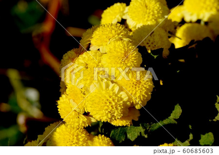 三鷹中原に咲く黄色いキク(スプレーマム)の花