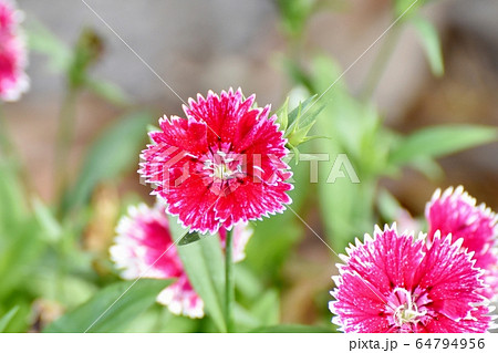 三鷹中原に咲く赤に白い縁取りのナデシコの花