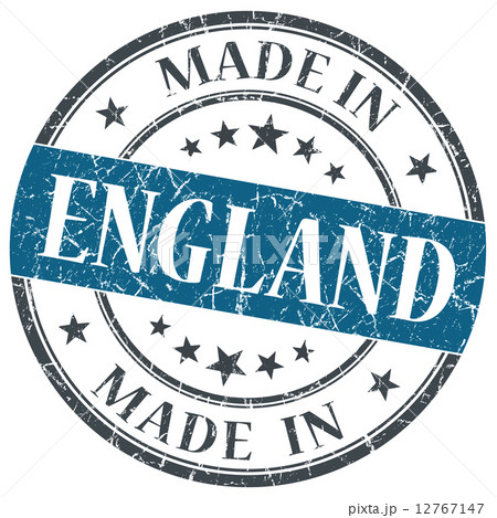 made in England blue grunge round stamp isolated on white background