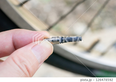 傷んだ自転車のチューブの英式バルブの虫ゴム