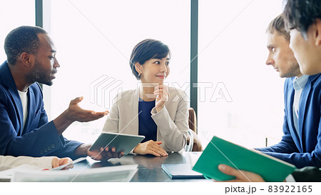 オフィスで会議する多国籍ビジネスパーソンのグループ