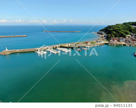 長崎市の茂木漁港の素朴な港湾風景の空撮
