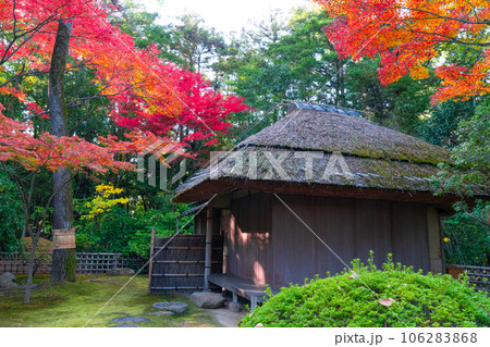 【日本三名園】特別名勝 後楽園の晩秋 茂松庵と紅葉2 岡山県岡山市北区