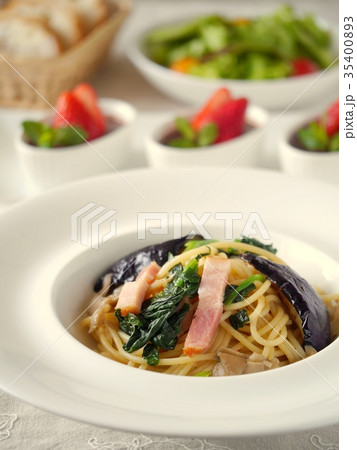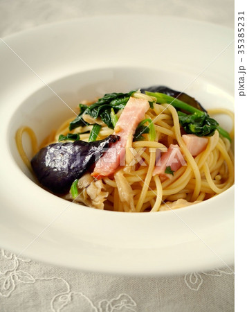茄子とキノコのパスタ ランチイメージ (縦位置ハイアングル)